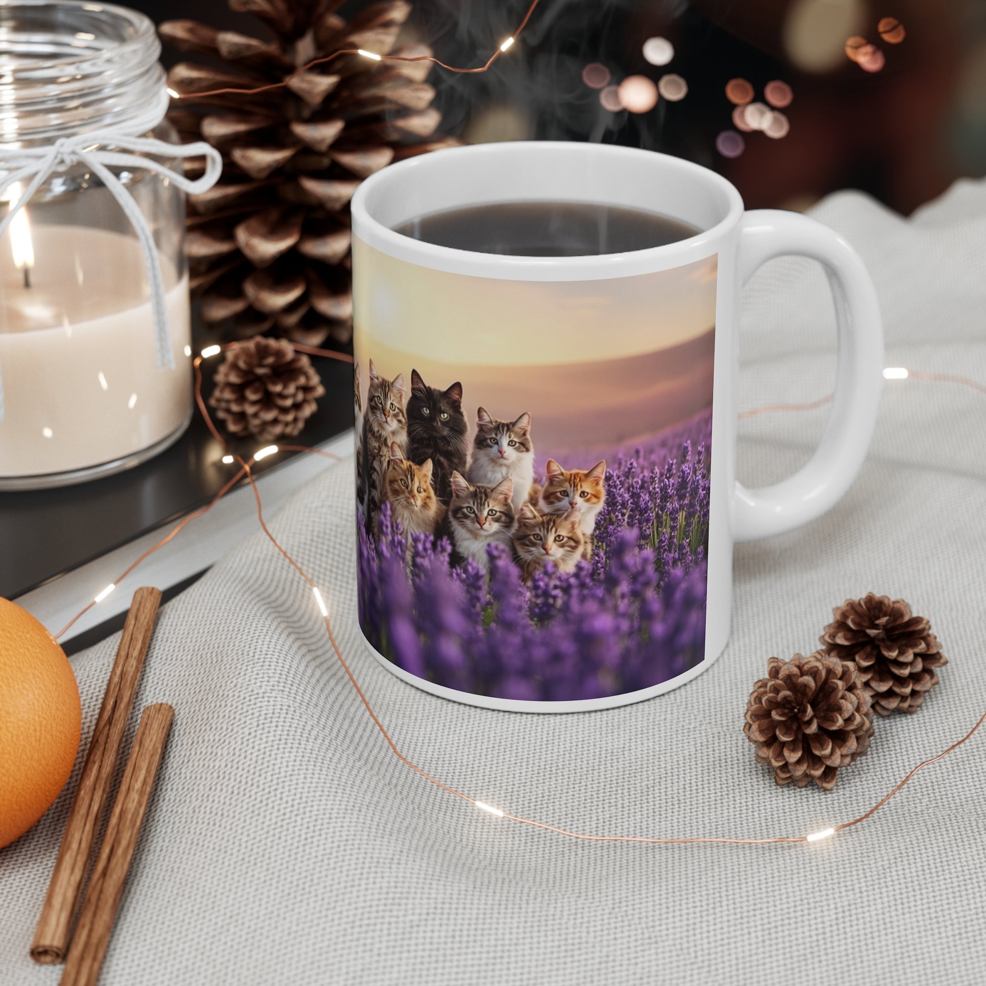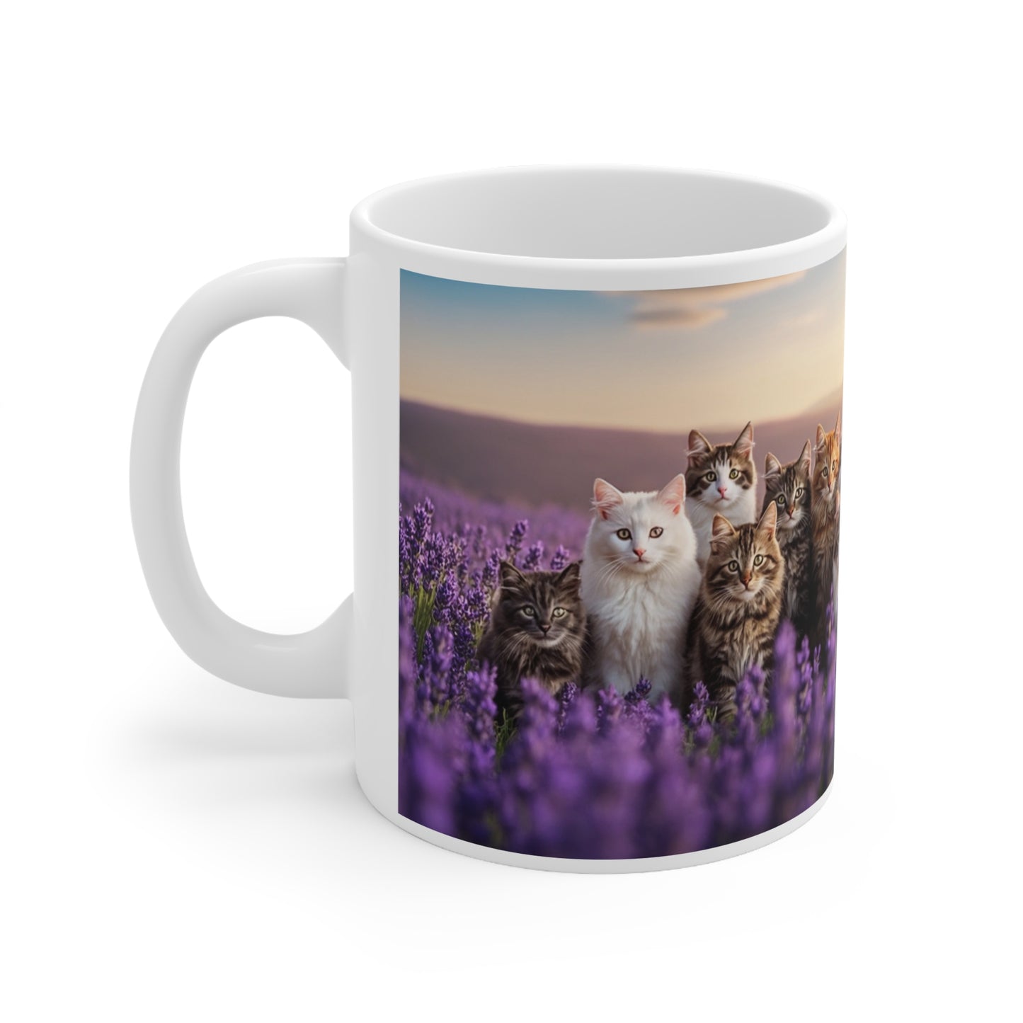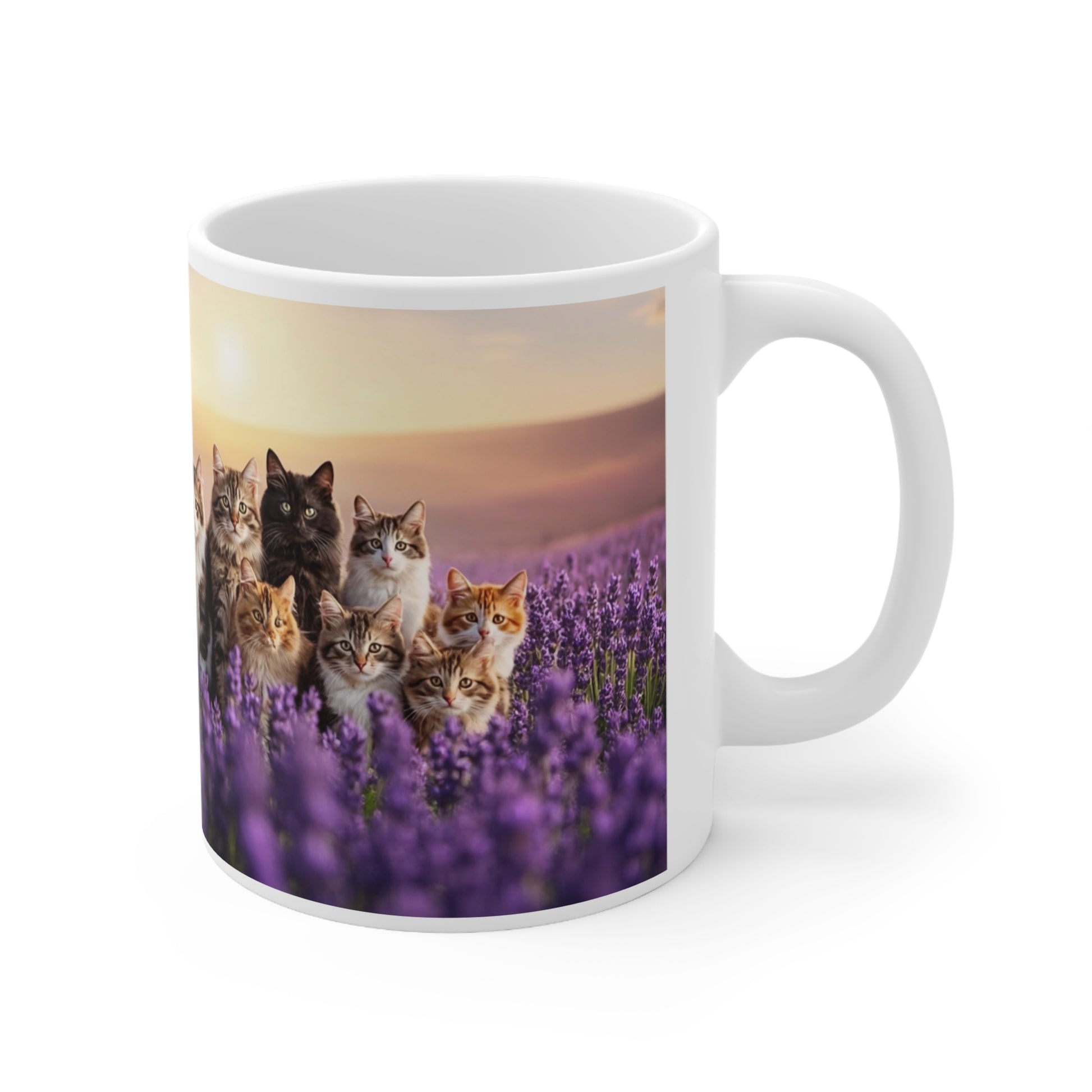Cute Cat Mugs, Cat Lover Gifts, Unique Pet Lover Gift, Lavender Field Design
